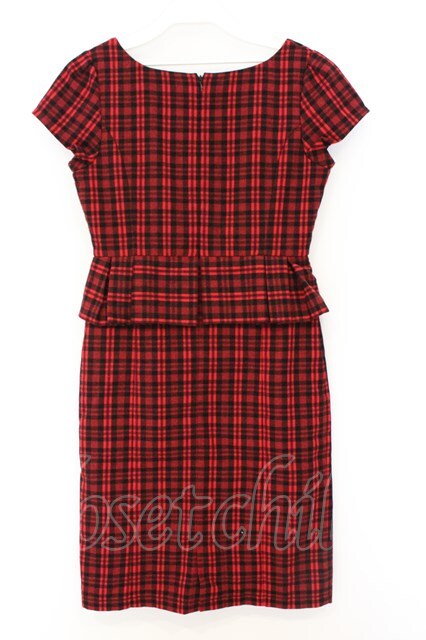 EATME / チェックペプラムワンピース S アカ O-26-03-08-037-LO-OP-OW-OS