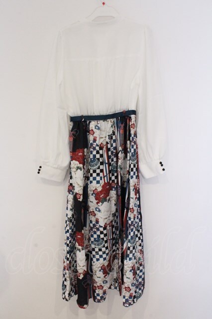 axes femme / 菊柄ワンピース F シロ O-26-03-08-009-AX-OP-OW-OS
