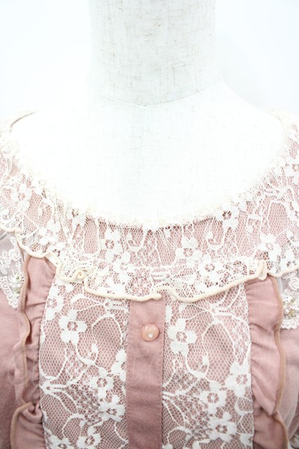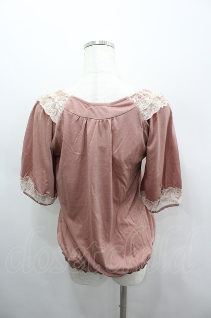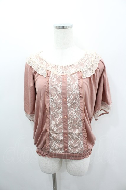 axes femme / レース切り替え半袖カットソー ピンクX白 I-26-03-06-034-AX-TO-SA-ZI