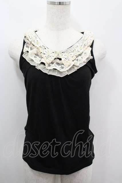 axes femme / レース&パール襟タンク 黒Xアイボリー I-26-03-06-049-AX-TO-SA-ZI