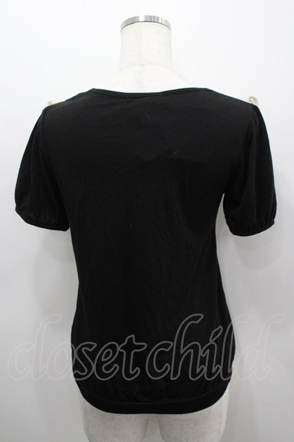 axes femme / パールシフォンリボンフリル半袖カットソー 黒Xアイボリー I-26-03-06-020-AX-TO-SA-ZI