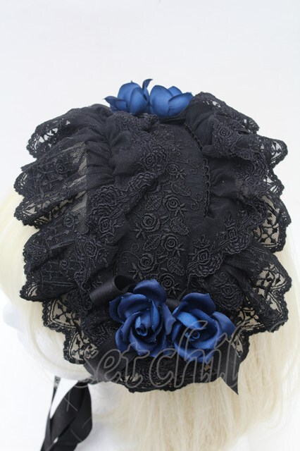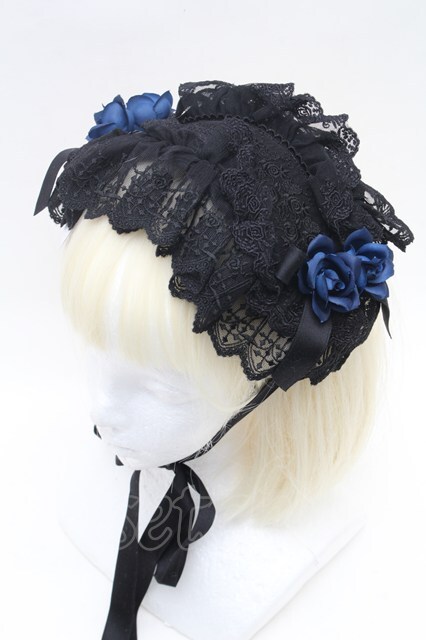 Moi-meme-Moitie / ローズクロスアーチヘッドドレス 黒x黒リボンx青バラ S-26-03-04-034-MO-AC-HR-ZS [2100020000038673-S-26-03-04-034-MO-AC-HR-ZS]