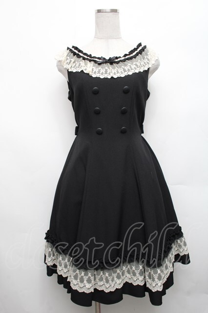 Innocent World / Wボタンフレアージャンパースカート M 黒 S-26-03-06-029-IW-OP-AS-ZS
