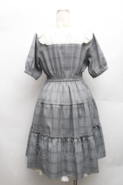 axes femme / リボンブローチティアードワンピース 白xグレー S-26-03-06-046-AX-OP-HR-ZS