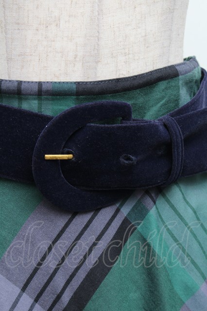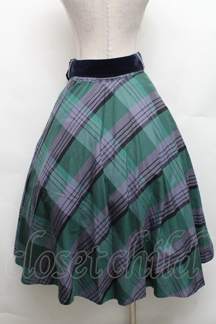 an another angelus / ビッグチェックフレアースカート F グリーン×ネイビー S-26-03-06-056-CA-SK-TE-ZS