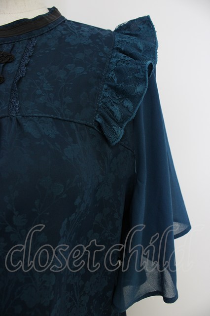 axes femme / ジャカードチャイナブラウス ブルーグリーン T-26-03-11-014-AX-BL-SA-ZT [2100060000033100-T-26-03-11-014-AX-BL-SA-ZT]