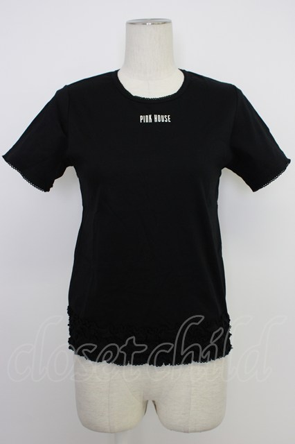 PINK HOUSE / フリルロゴ使い半袖カットソー 黒X白 T-26-03-11-020-LO-TO-SA-ZT