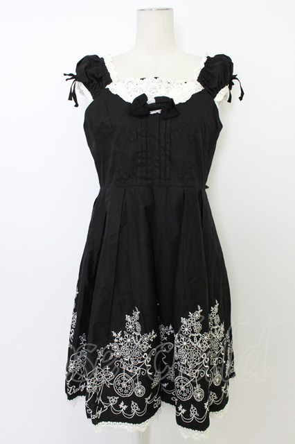 BABY,THE STARS SHINE BRIGHT / 花車刺しゅうヨークジャンパースカート 黒 T-26-03-11-026-BA-OP-SA-ZT