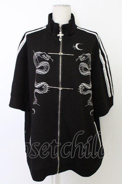 柘枝引 TricuspidC / 蛇刺繍半袖ジャージ 黒X白 T-26-03-11-037-PU-TO-SA-ZT [2100060000049374-T-26-03-11-037-PU-TO-SA-ZT]