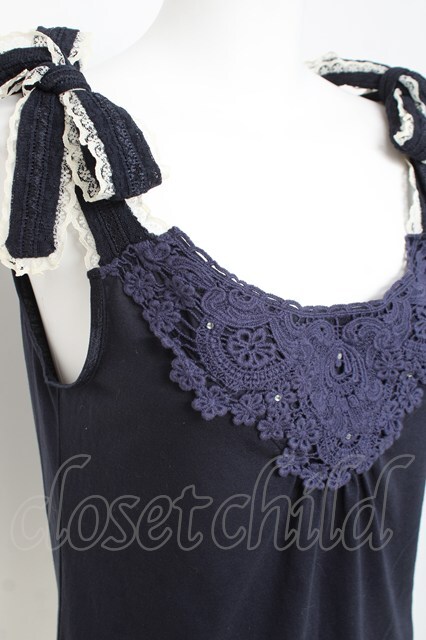 axes femme / 肩リボンレースタンク M 紺 Y-26-03-09-007-AX-TO-SZ-ZY
