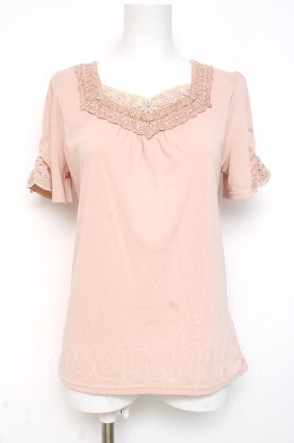 axes femme / ローズレースVネック半袖カットソー M ピンク Y-26-03-09-082-AX-TO-SZ-ZY