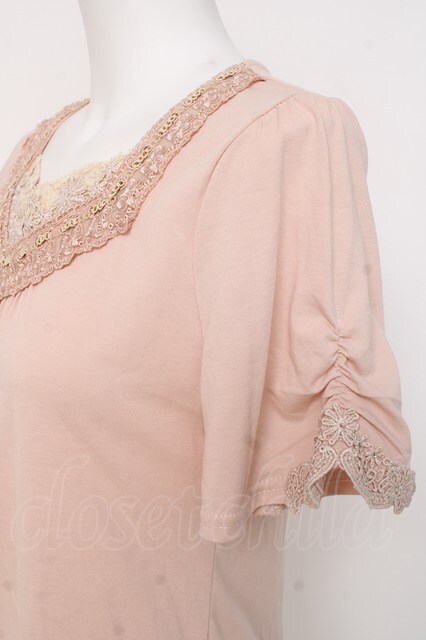 axes femme / ローズレースVネック半袖カットソー M ピンク Y-26-03-09-082-AX-TO-SZ-ZY [2100070000054044-Y-26-03-09-082-AX-TO-SZ-ZY]