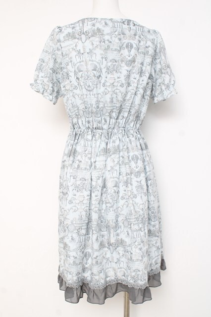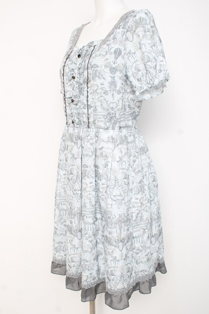 axes femme / アンティーク柄ワンピース M サックス Y-26-03-09-217-AX-OP-SZ-ZY