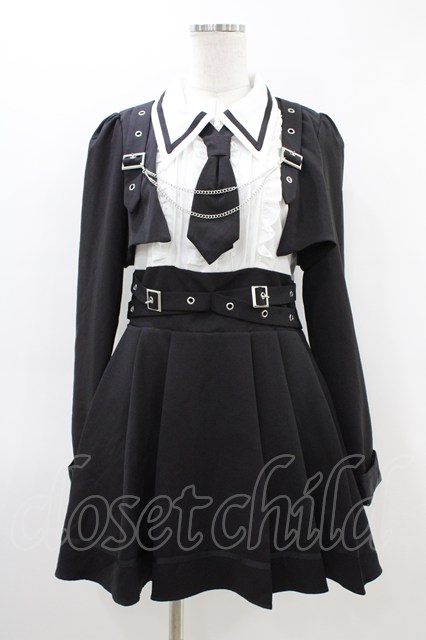 DearMyLove / ジャケット風チェーンネクタイベルトプリーツワンピース LL ブラック H-26-03-11-039-EL-OP-NS-ZH