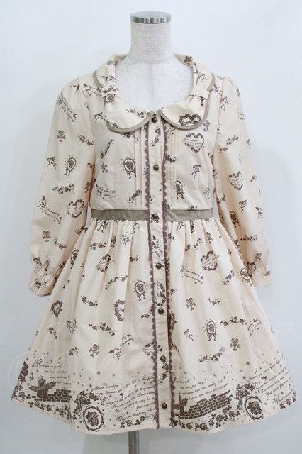Ank Rouge / 天使プリントワンピース M ベージュ H-26-03-10-1030-CA-OP-NS-ZH