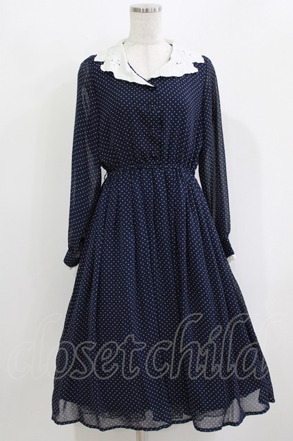 Fi.n.t / カットワーク開衿ドット柄ワンピース Free NAVY H-26-03-10-1023-CA-OP-NS-ZH