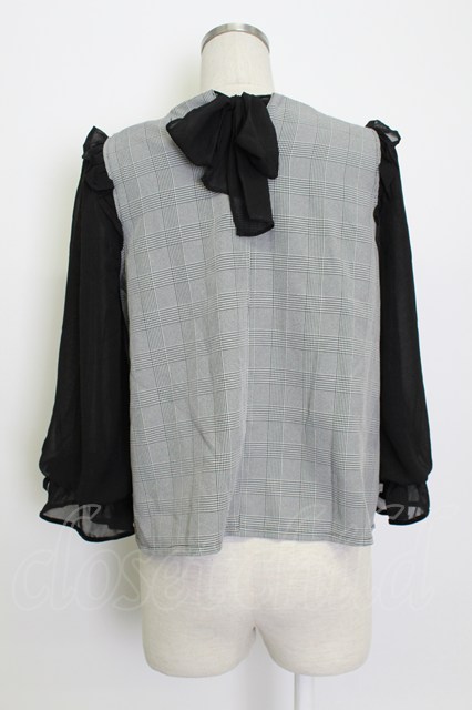 axes femme POETIQUE / グレンチェックシフォン袖トップス 黒X白 T-26-03-13-004-AX-TO-SA-ZT