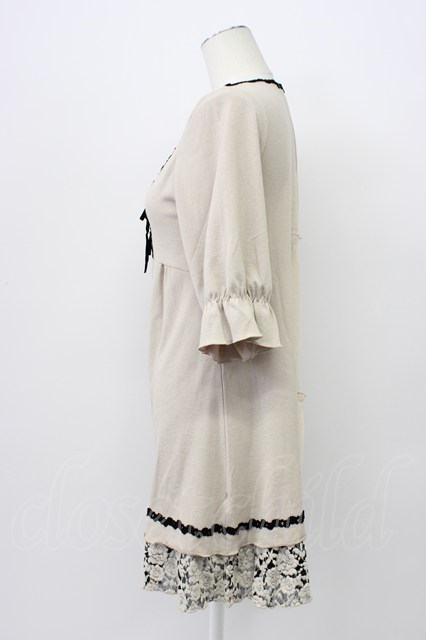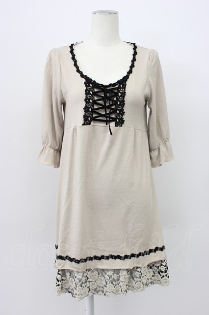 axes femme / フロント編み上げ半袖ワンピース ベージュX黒 T-26-03-13-023-AX-OP-SA-ZT [2100060000039756-T-26-03-13-023-AX-OP-SA-ZT]
