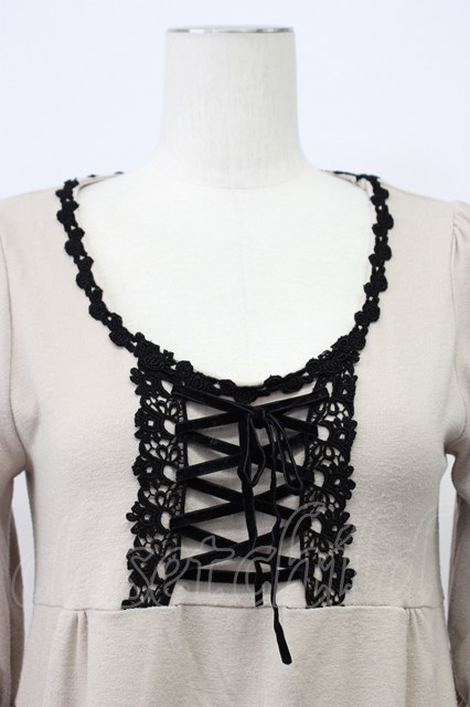 axes femme / フロント編み上げ半袖ワンピース ベージュX黒 T-26-03-13-023-AX-OP-SA-ZT