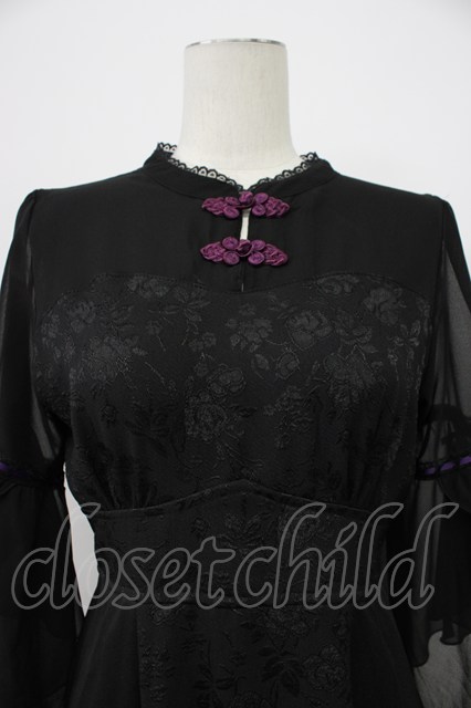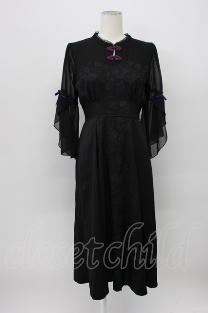 axes femme POETIQUE / チャイナボタンフレア袖ワンピース M ブラック T-26-03-13-029-AX-OP-SA-ZT