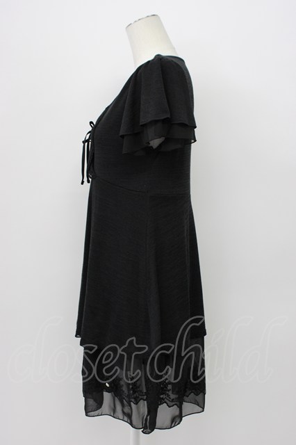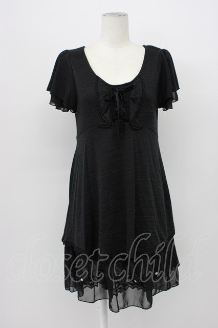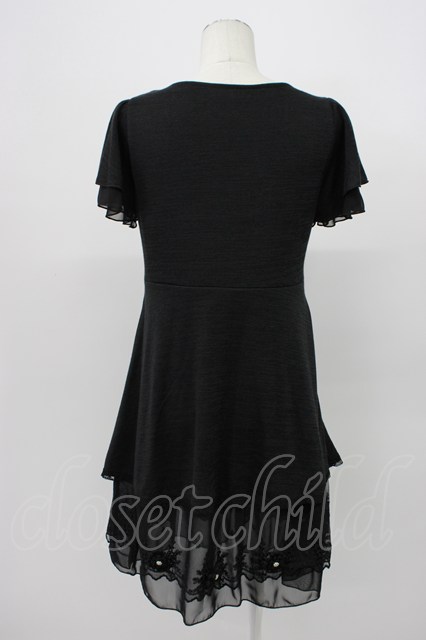 axes femme / 裾お花モチーフ半袖ワンピース 黒 T-26-03-13-030-AX-OP-SA-ZT [2100060000039717-T-26-03-13-030-AX-OP-SA-ZT]