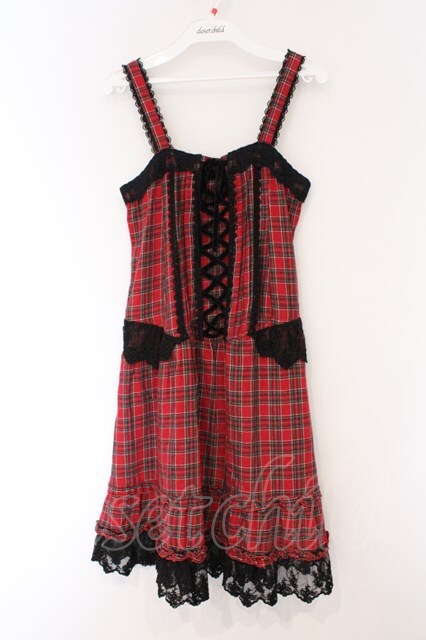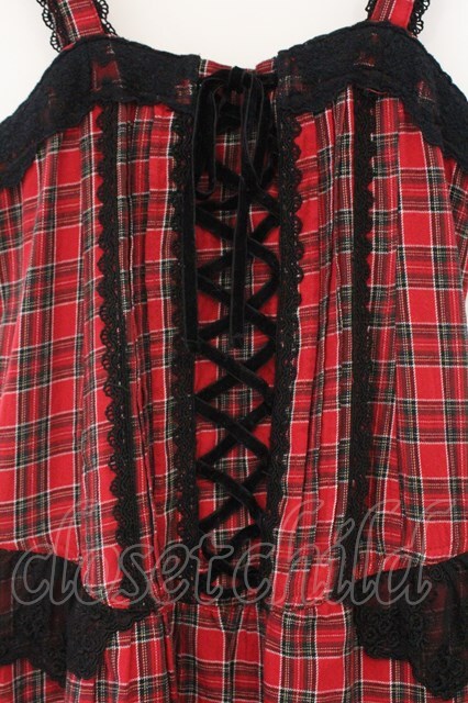 axes femme / タータンチェックフリルタックワンピース アカ O-26-03-09-023-AX-OP-IG-OS