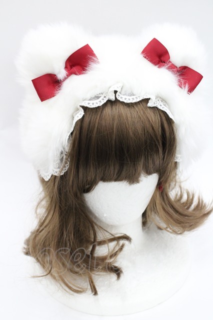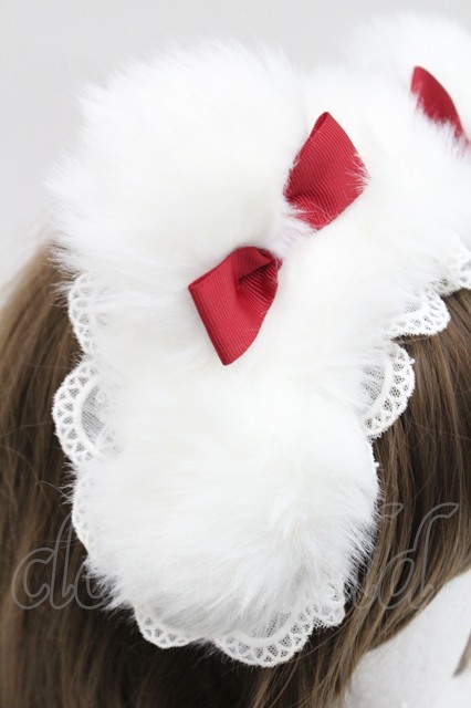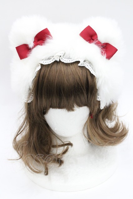 LOLITAその他(お買取対象外) / くまみみファーリボンカチューシャ 白X赤 I-26-03-08-024-LO-AC-SA-ZI