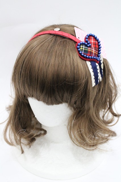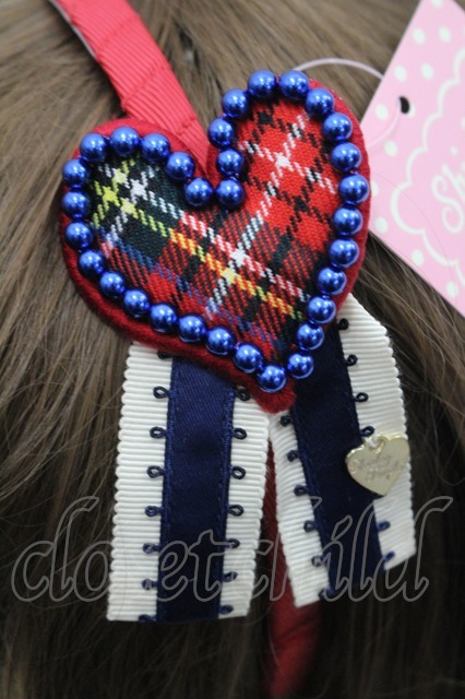 Shirley Temple / チェックハートパールモチーフカチューシャ 赤 I-26-03-08-027-ET-AC-SA-ZI