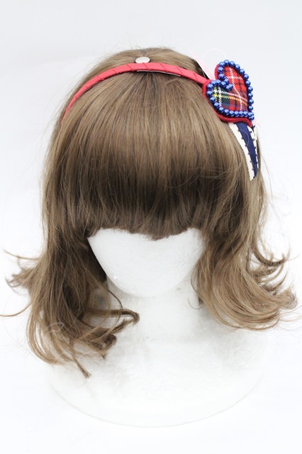 Shirley Temple / チェックハートパールモチーフカチューシャ 赤 I-26-03-08-027-ET-AC-SA-ZI [2100060000033198-I-26-03-08-027-ET-AC-SA-ZI]