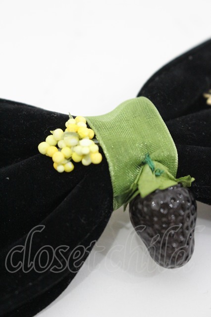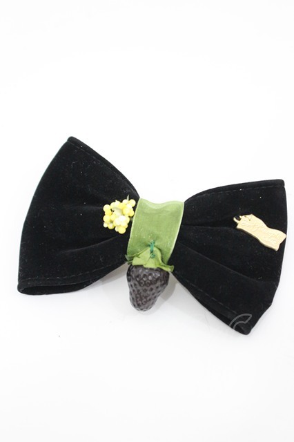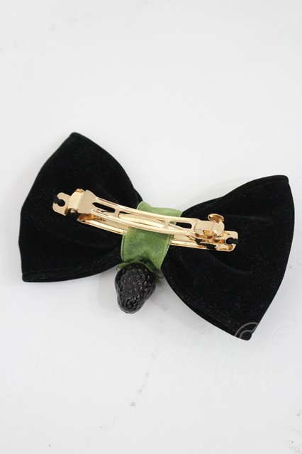 Emily Temple cute / ベリー別珍リボンバレッタ 黒 I-26-03-08-088-ET-AC-SA-ZI