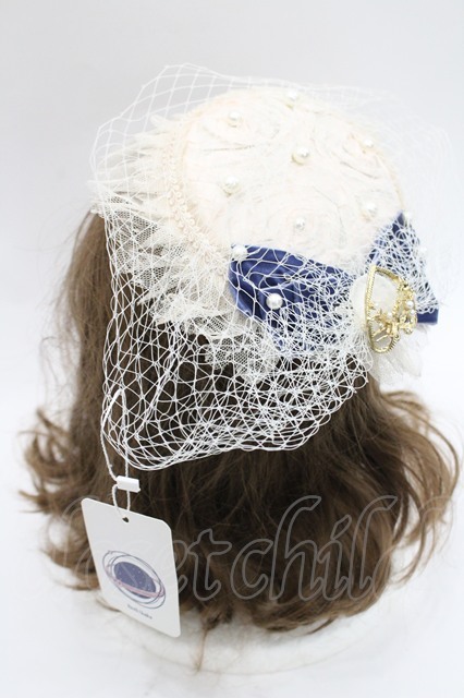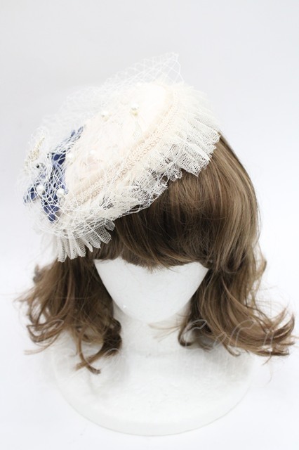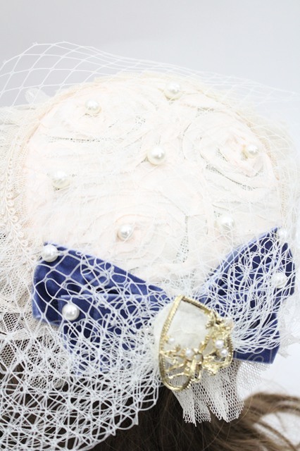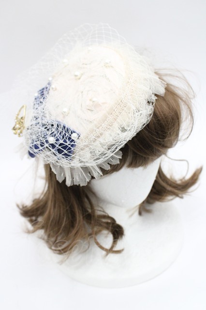 Hoshibako Works / パールリボンチュール重ねカクテルハット ベージュXネイビー I-26-03-08-047-LO-AC-SA-ZI