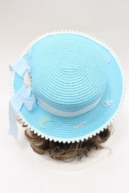 Nile Perch / BABYリボンモチーフ麦わらハット 青 I-26-03-08-056-LO-AC-SA-ZI [2100060000052385-I-26-03-08-056-LO-AC-SA-ZI]