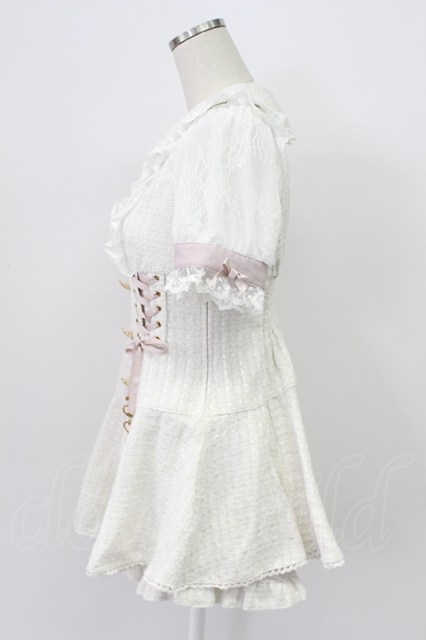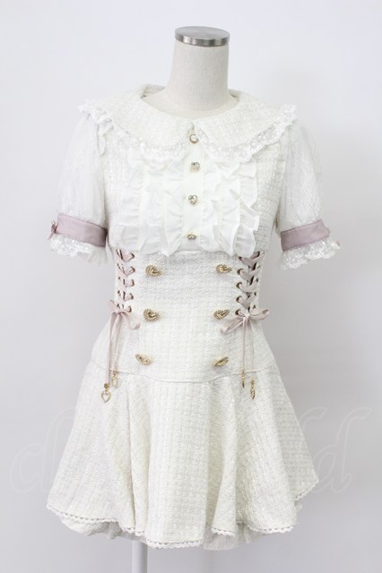 LIZ LISA / 半袖メッセージリボンツイードセットアップ 白Xピンク T-26-03-16-010-LO-OP-SA-ZT [2100060000046997-T-26-03-16-010-LO-OP-SA-ZT]