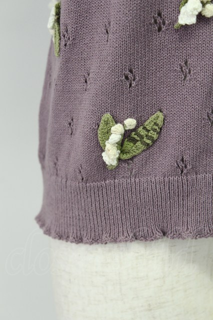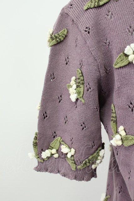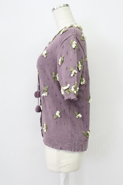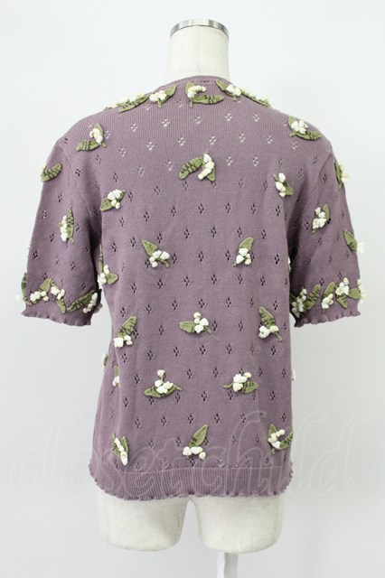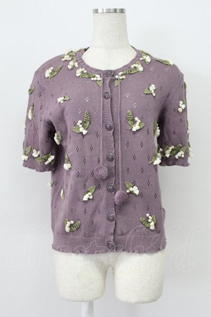 KANEKO ISAO / モチーフ付き半袖カーディガン ラベンダー T-26-03-16-012-EL-TO-OW-ZT [2100080000058111-T-26-03-16-012-EL-TO-OW-ZT]