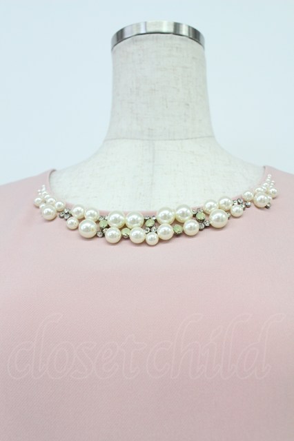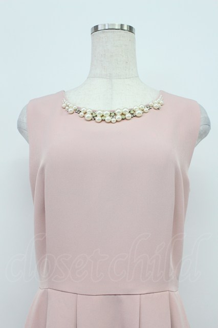 axes femme / パールラインノースリーブワンピース ピンクX白 T-26-03-16-026-AX-OP-SA-ZT