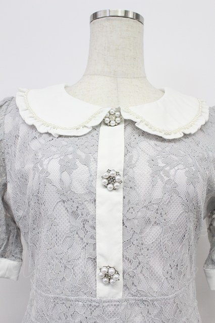 evelyn / パール襟レースワンピース グレー T-26-03-16-029-LO-OP-SA-ZT