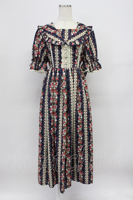 axes femme kawaii / ローズベリーガーデンワンピース M ネイビー T-26-03-16-031-AX-OP-SA-ZT