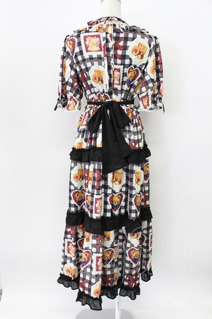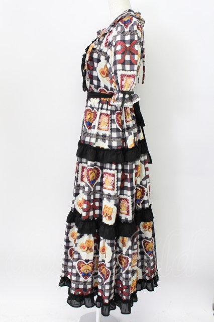 axes femme kawaii / ベアズベーカリー柄ロングワンピース M ブラック T-26-03-16-036-AX-OP-SA-ZT