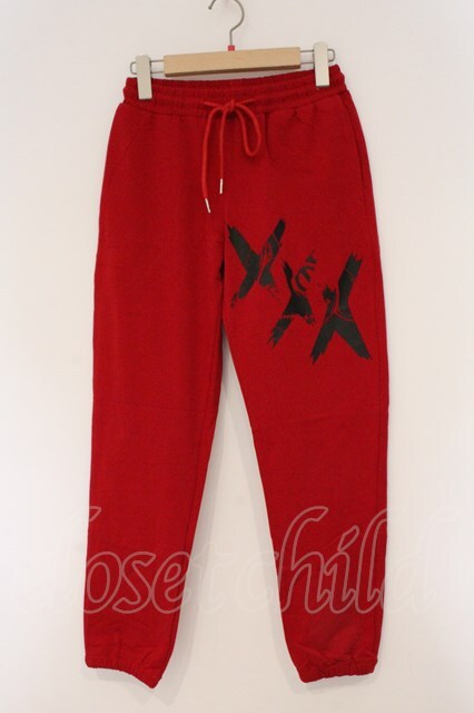 NieR Clothing / プリントスウエットパンツ レッド ××× O-26-03-10-079-PU-PA-IG-OS