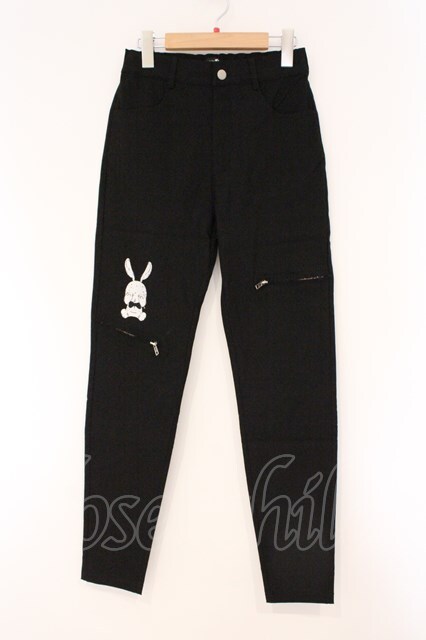 NieR Clothing / 刺繍DESIGN FAKE ZIPPER STYLISH PANTS【CRY RABBIT】 パンツ ブラック O-26-03-10-082-PU-PA-IG-OS [2100080000076524-O-26-03-10-082-PU-PA-IG-OS]