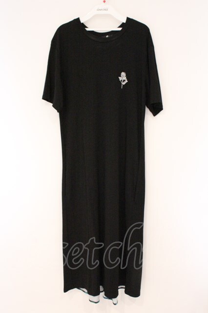 NieR Clothing / BACK ROSEマキシ丈ワンピース ブラック×グリーン ローズ O-26-03-10-096-PU-OP-IG-OS