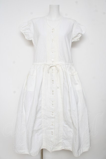 PINK HOUSE / ノーカラー半袖ワンピース F 白 Y-26-03-11-071-LO-OP-SZ-ZY