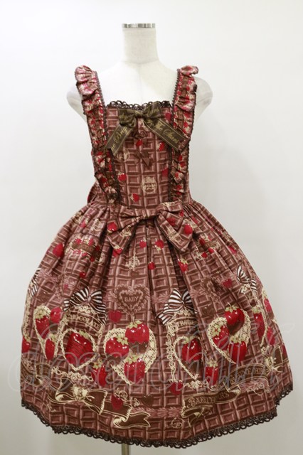 BABY,THE STARS SHINE BRIGHT / Strawberry Loves Chocolate柄エプロンフリルジャンパースカート・カチューシャセット Free ブラウン H-26-03-12-067-BA-OP-NS-ZH [2100030000089211-H-26-03-12-067-BA-OP-NS-ZH]