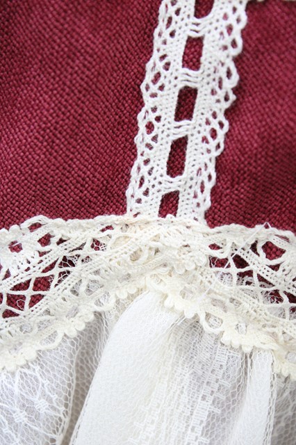 吸吸猫(海外ロリータブランド) / はしごレースジャンパースカート Free ワイン H-26-03-14-046-PU-OP-NS-ZH [2100030000089459-H-26-03-14-046-PU-OP-NS-ZH]