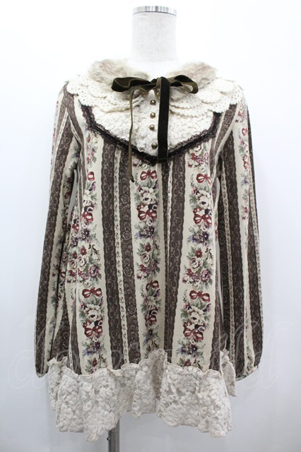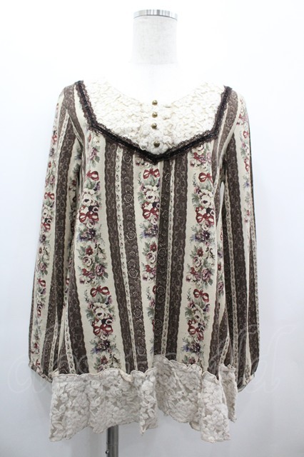 axes femme / ファーティペット付花柄プルオーバー M グレー I-26-03-10-019-AX-TO-TE-ZI