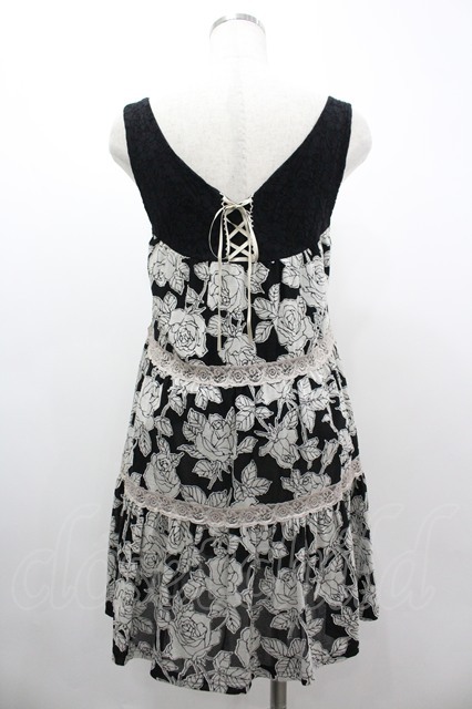 axes femme / /ローズ柄チュニック M 黒 I-26-03-10-066-AX-TO-TE-ZI