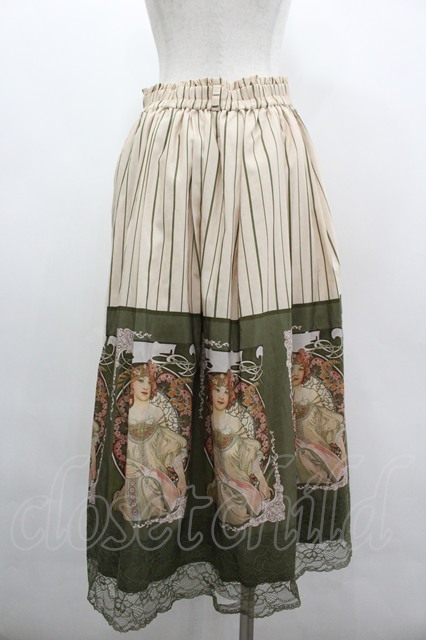 axes femme / ミュシャ パネル柄スカート M グリーン I-26-03-10-076-AX-SK-SA-ZI