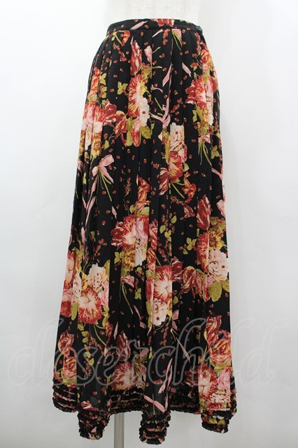KANEKO ISAO / フラワーブーケプリーツスカート ブラック I-26-03-10-086-EL-SK-SA-ZI