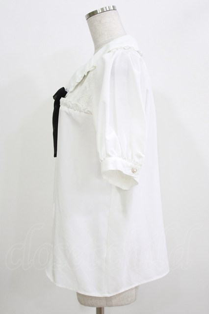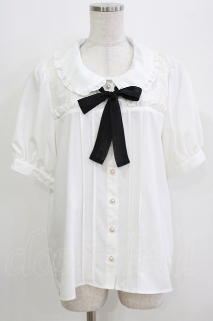 majoretty / レース切替リボンブラウス L 白/ブラック H-26-03-13-1050-GO-BL-NS-ZH [2100030000089404-H-26-03-13-1050-GO-BL-NS-ZH]