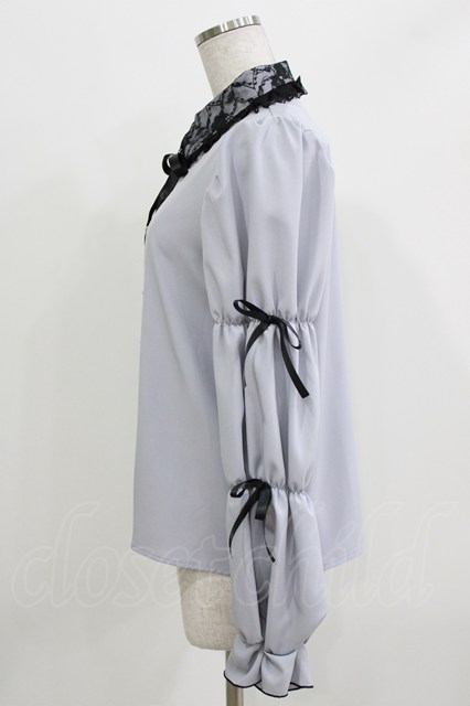 majoretty / レースカラーリボンブラウス L ブルー H-26-03-13-1038-GO-BL-NS-ZH